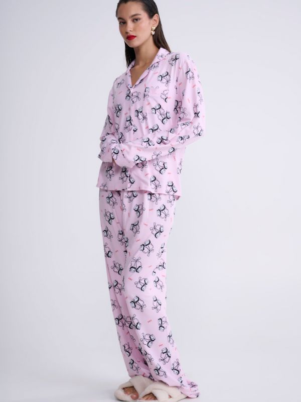 חולצת פיג’מה עם שרוולים ארוכים מבד נעים למגע בגזרה משוחררת אקסטרה נוחה.