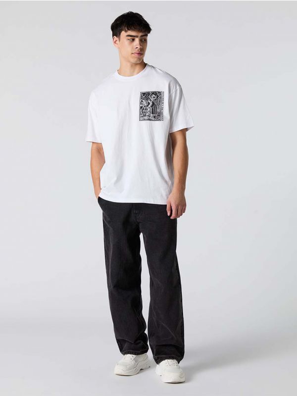 לא הגיע הזמן שתחדש את אוסף הטי-שירטים שלך בארון? טי-שירט מבד כותנה בגזרת בייסיק אקסטרה נוחה עם צווארון עגול.