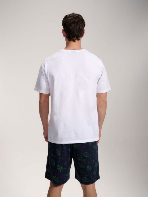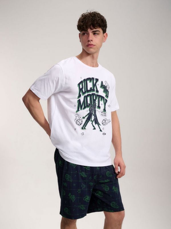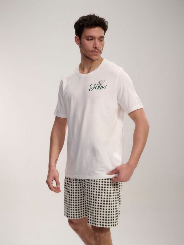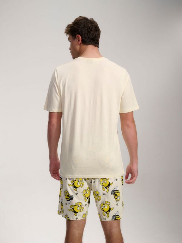 ספויילר... יהיה לך קשה להיפרד בבקרים! סט פיג’מה קצרה בגזרה קלאסית ונוחה, בול ללילות החמים, עם פרינט טרנדי לחלומים נעימים.
