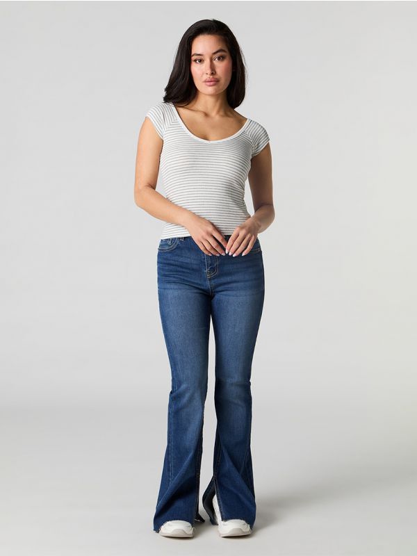 חולצת טי ארוכה צווארון V לנשים